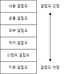 - 결합도가 약할수록 품질이 높고, 강할수록 품질이 낮음
