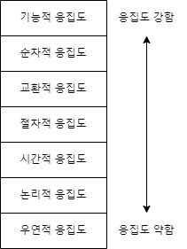 - 응집도가 강할수록 품질이 높고, 약할수록 품질이 낮음