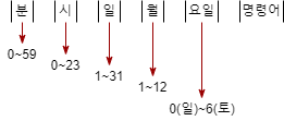 분, 시, 일, 월, 요일에 "*"를 입력하면 매 시기마다 수행