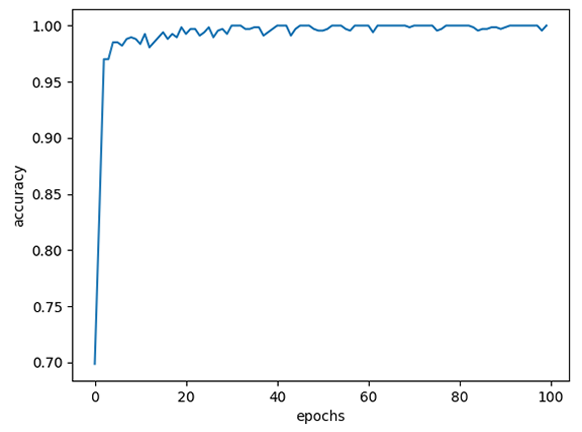 | epochs=100 | 100% | 99.65% |