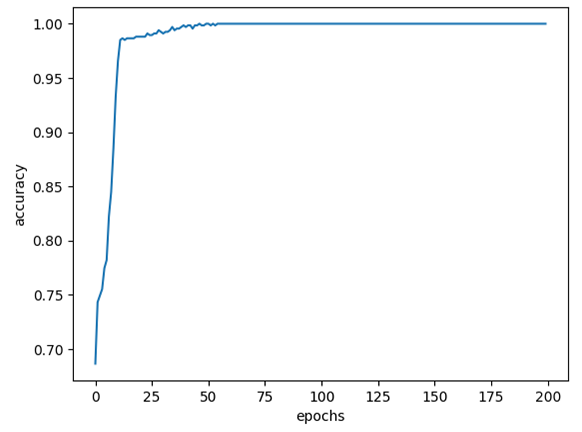 | epochs=200 | 100% | 97.57% |