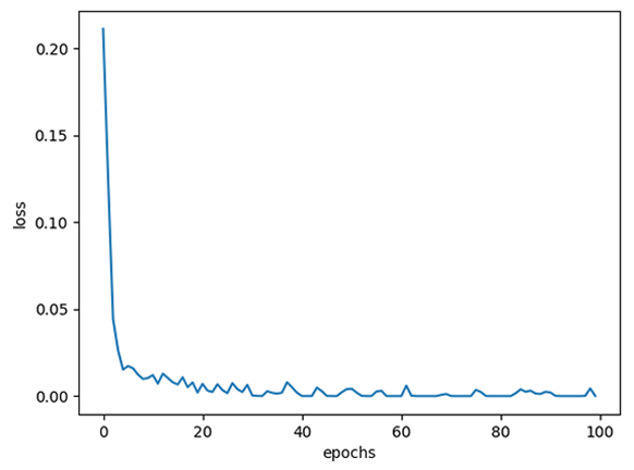 epochs 값을 100으로 설정합니다.
